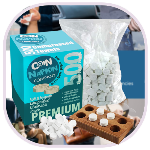 Coin Napkin Company Box of 500 Napkins Compressed Wet Wipes Tissues Magic RRP: Was: Now: £3.50 - £240.00 Add water and see expand Quality Disposable napkin Made from 100% recycled materials and 100% bi…
