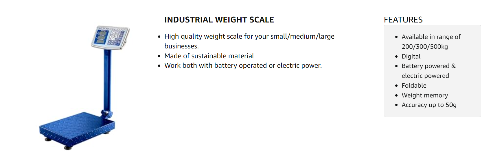 - Multiple Model Fits Your Need: Maximum weight of 200/300/500 kg, ideal for large items in small business or food markets or post shipping.
