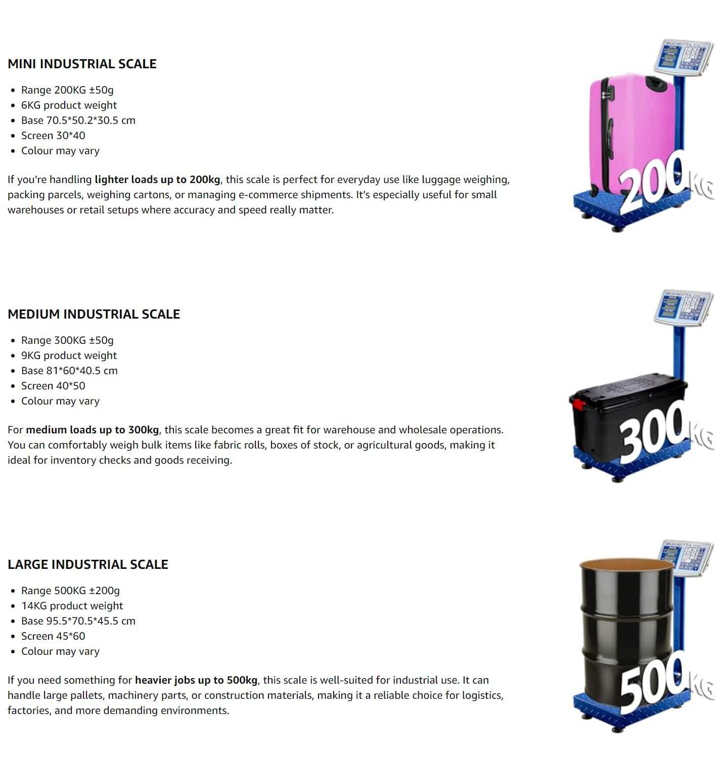 - Multiple Model Fits Your Need: Maximum weight of 200/300/500 kg, ideal for large items in small business or food markets or post shipping.